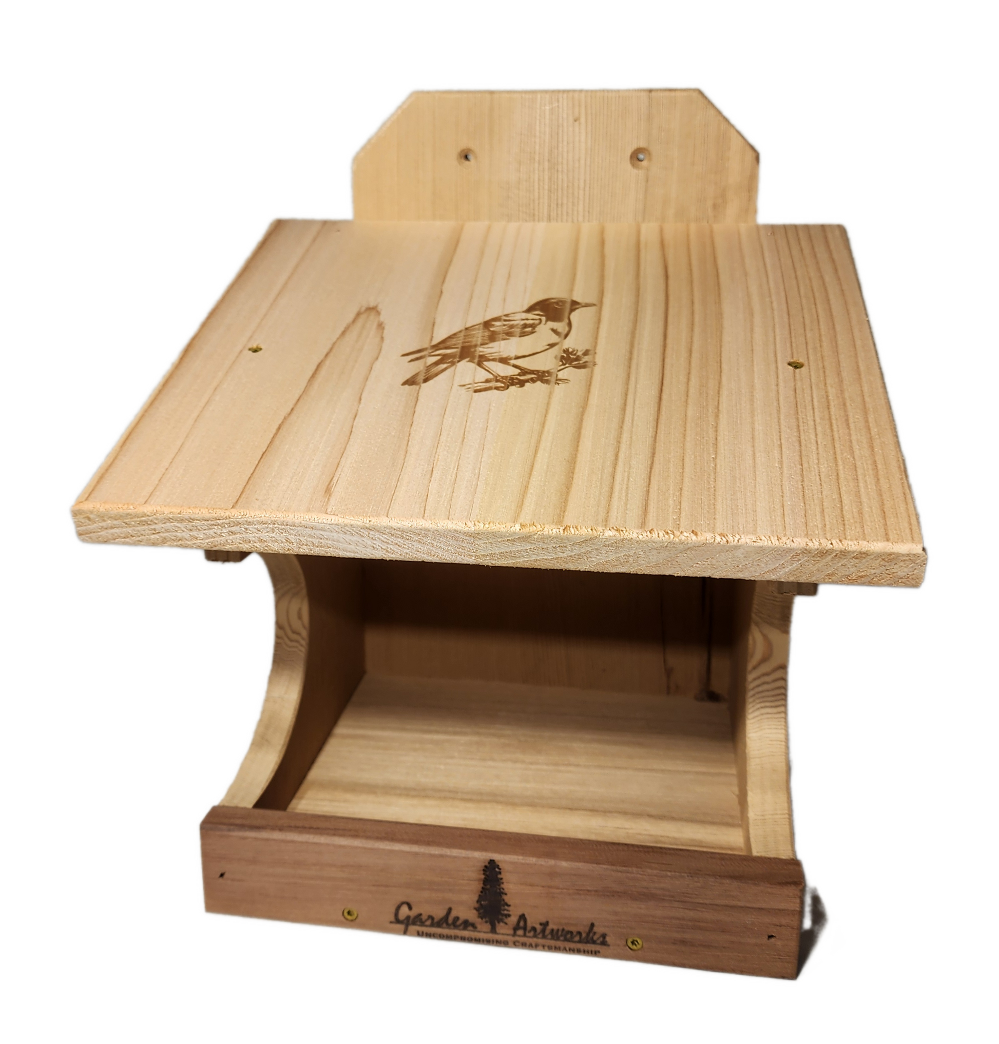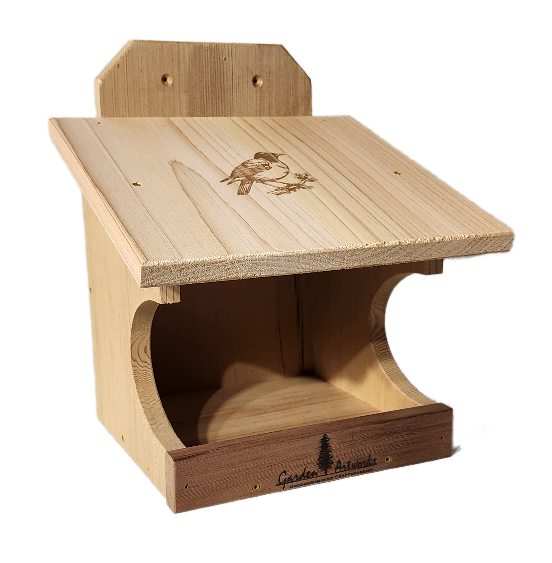 Made from beautiful cedar wood, the Robin Roost Shelf is not only durable but also aesthetically pleasing. Its curved side cutouts provide a unique viewing experience while the drainage slots and overhanging roof protect from rain. With an engraved robin image, this shelf is perfect for attracting and observing these beautiful birds. Mounting screws are included for easy installation.