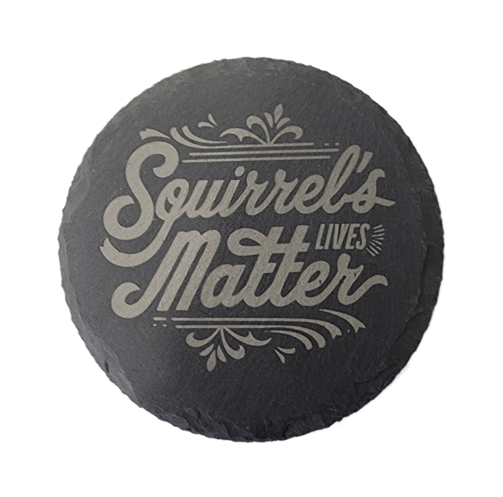 Elevate your home decor with our Slate Coaster, laser engraved with the powerful message "Squirrel's Lives Matter". Show your support for wildlife and add a touch of charm to your living space. Perfect for gifting or treating yourself, this coaster is a stylish and meaningful addition to any home.