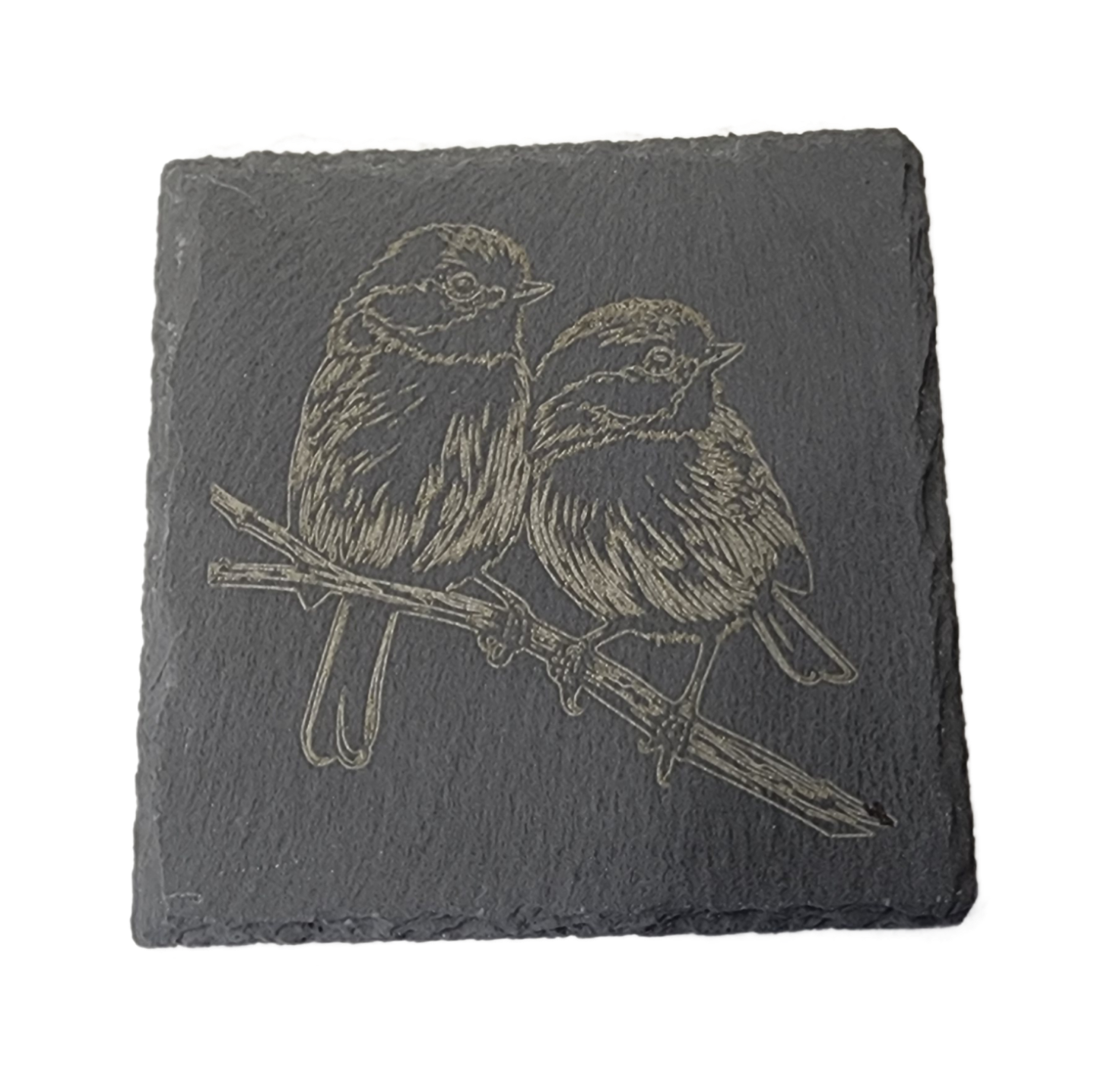 Bring nature into your home with our Slate Coasters! Adorned with a stunning laser engraved image of 2 chickadees perched on a tree branch, these coasters are not only functional but also bring a touch of beauty to your decor. Protect your furniture while adding a touch of charm with our Slate Coasters.