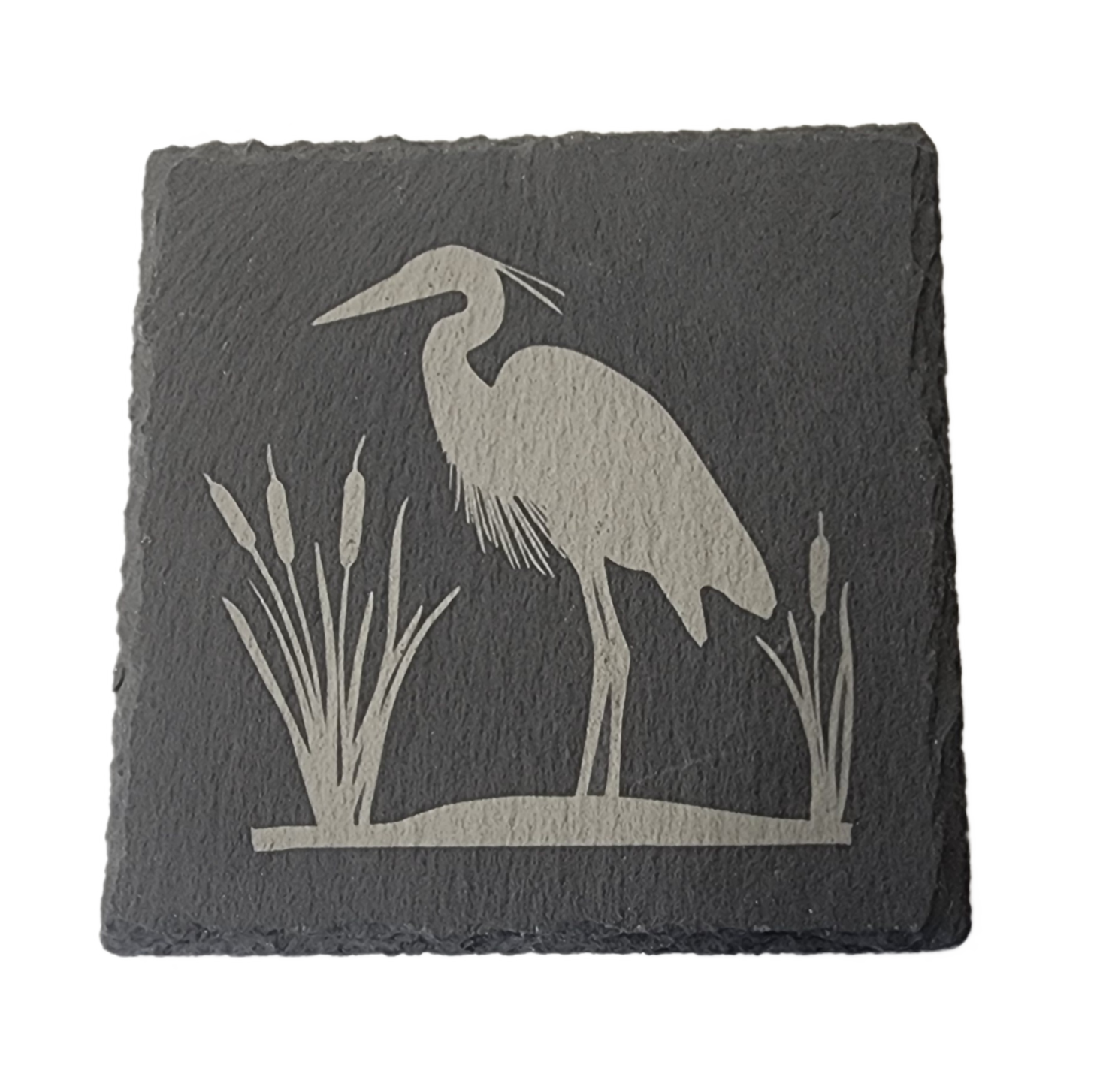 Experience the beauty of nature with our Slate Coaster featuring a laser engraved image of a great blue heron among delicate pussy willows. Protect your surfaces while adding a touch of elegance to your home. Perfect for nature lovers and those who appreciate fine craftsmanship. Order now!