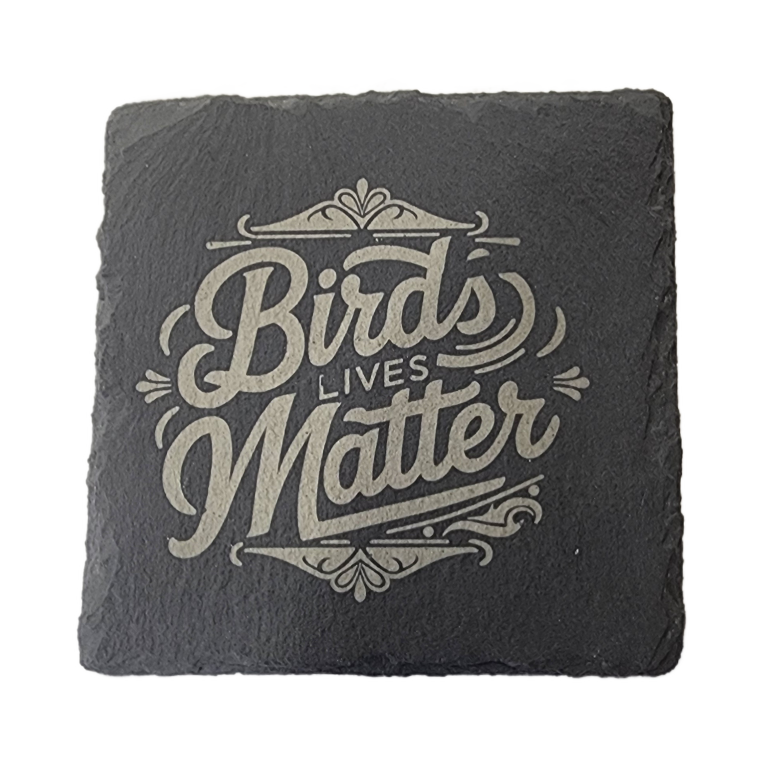 Elevate your home decor with our Slate Coaster, laser engraved with the inspiring phrase "Birds Lives Matter". Show your passion for animal rights and add a touch of elegance to your space. Protect your surfaces while making a statement. A must-have for any bird lover!