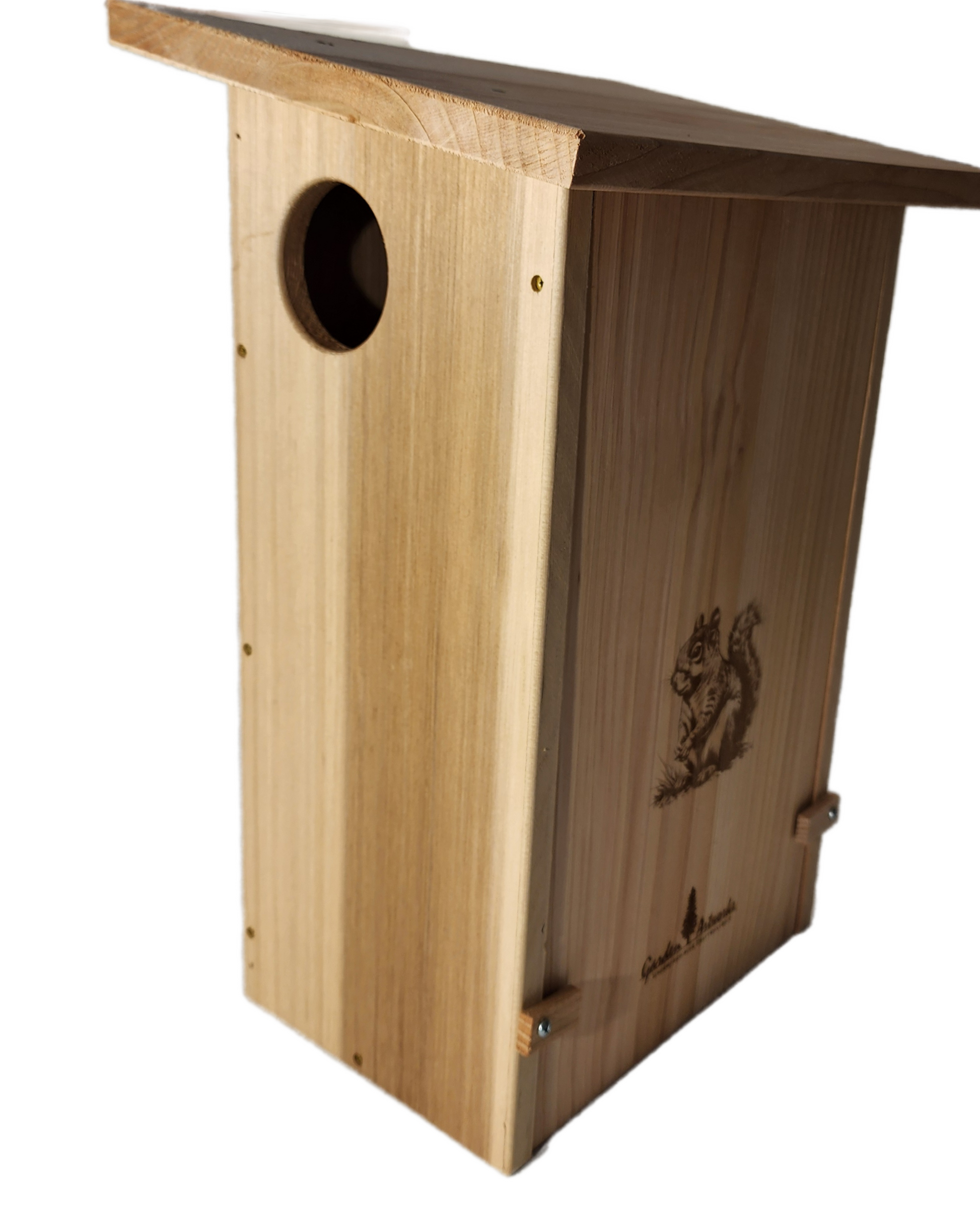 Give your furry friends the perfect home with our Squirrel House! Made of sturdy cedar wood and featuring a side entrance and 2 1/2" entrance hole, this house is built to last. With screw construction and a mounting screw included, it's easy to set up and provides a safe and cozy space for squirrels to call their own.